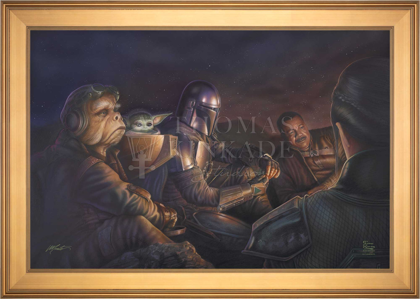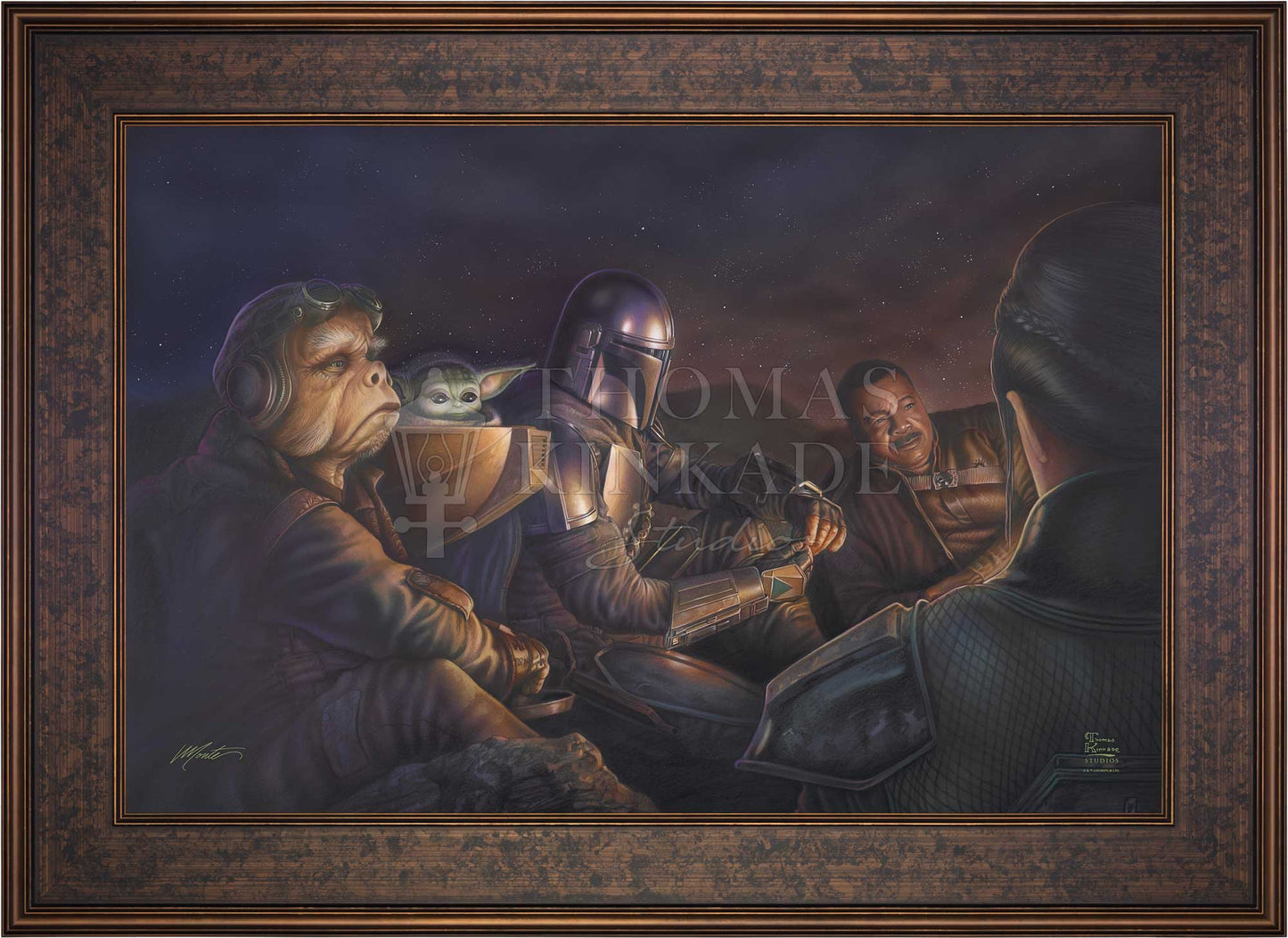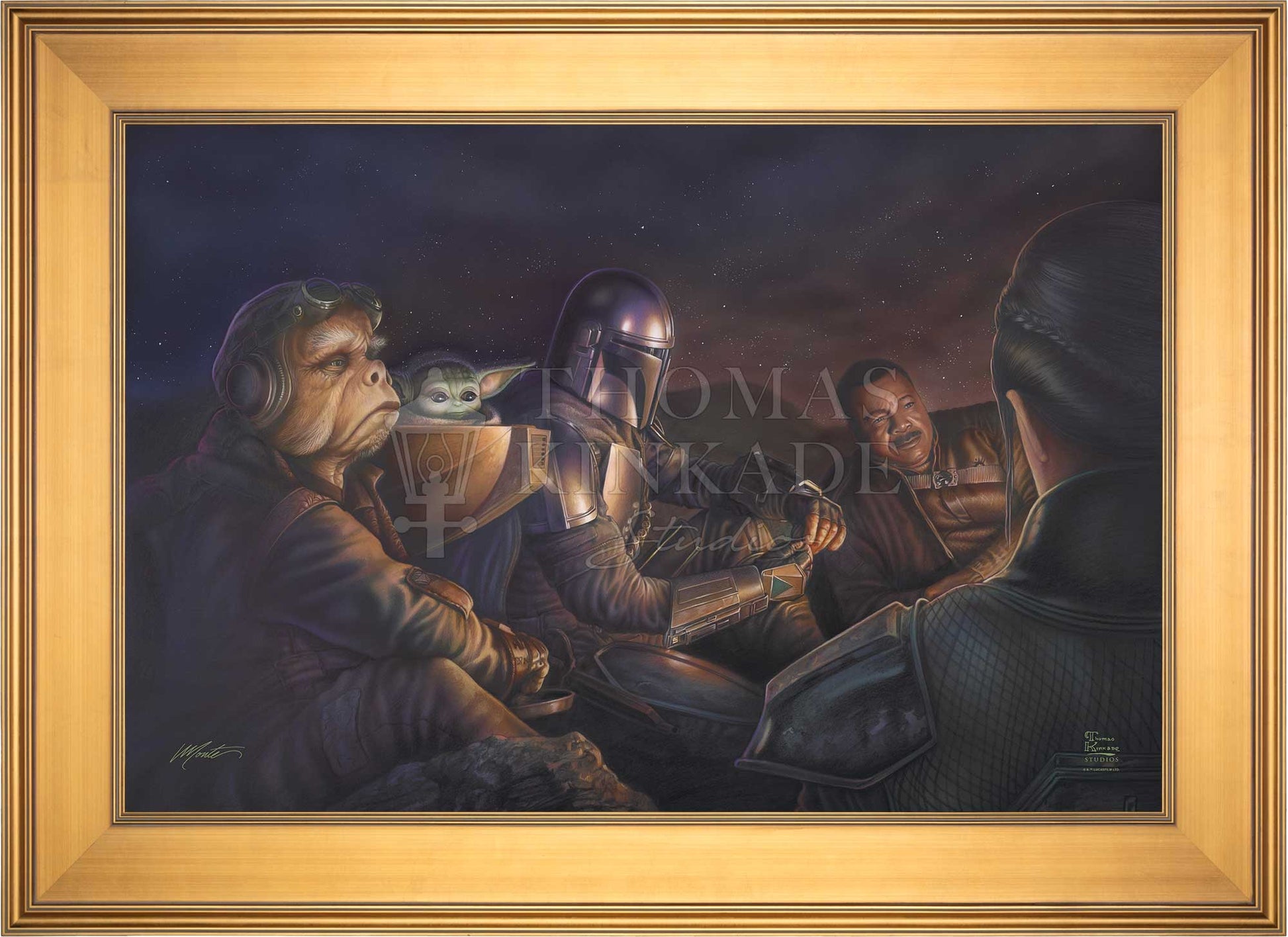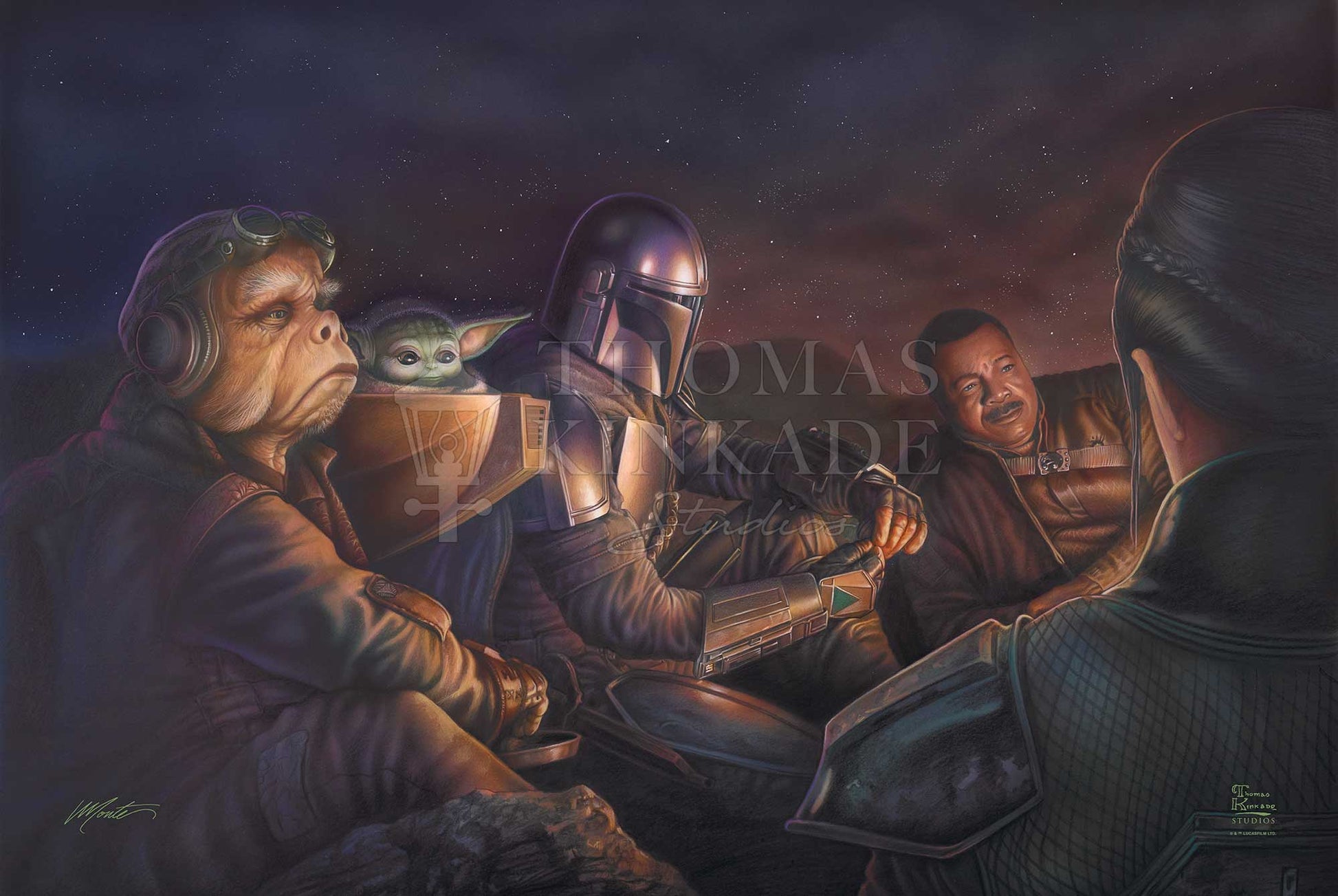 After a tentative agreement is struck between Greef Karga™ and his Bounty Hunter Guild, mercenaries’ tensions still seem on edge as the Mandalorian™ and his contingent huddle around a fire on the Nevarro™ plains later that night. Although plans are being made for the next day’s events, not all involved are still sure they can trust their new companions. The only attendees who truly seem at ease are Kuiil™ and Grogu™, who generally seem to enjoy their brief rest by the fire after their recent journeys. But that moment of calm may soon be interrupted…