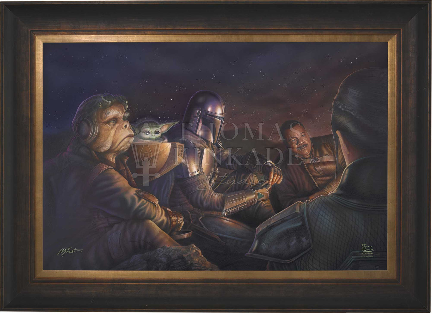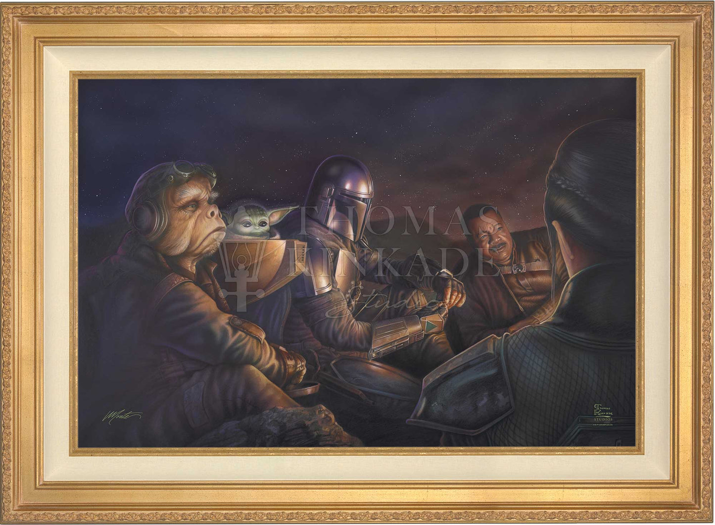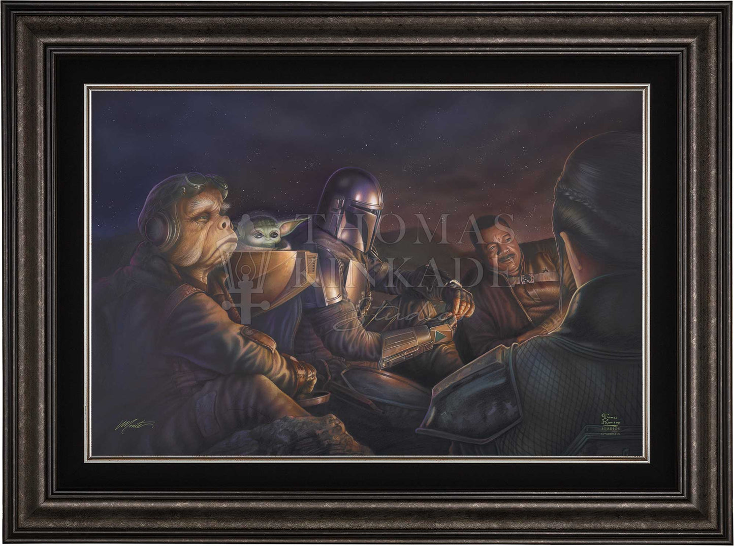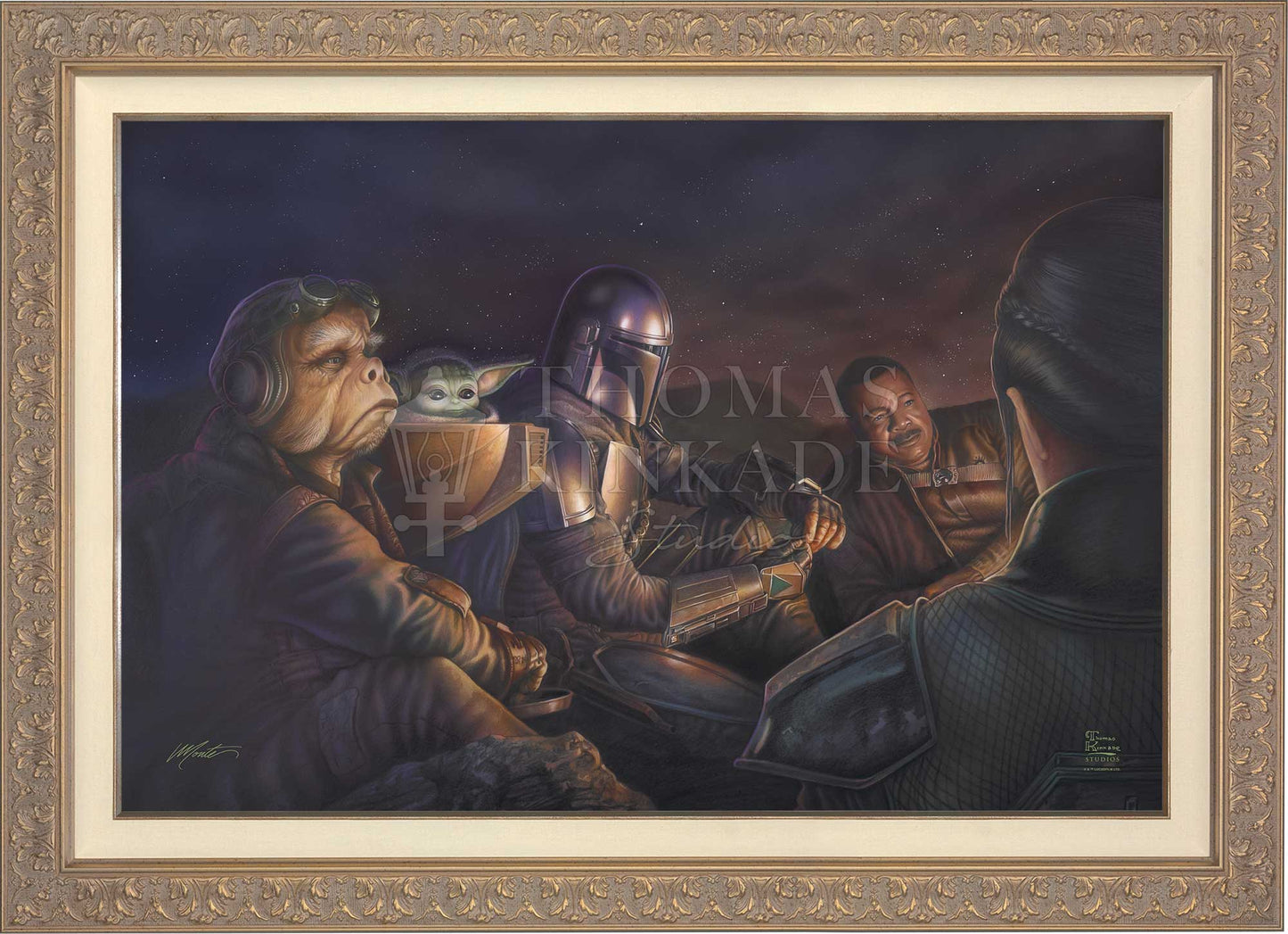After a tentative agreement is struck between Greef Karga™ and his Bounty Hunter Guild, mercenaries’ tensions still seem on edge as the Mandalorian™ and his contingent huddle around a fire on the Nevarro™ plains later that night. Although plans are being made for the next day’s events, not all involved are still sure they can trust their new companions. The only attendees who truly seem at ease are Kuiil™ and Grogu™, who generally seem to enjoy their brief rest by the fire after their recent journeys. But that moment of calm may soon be interrupted…