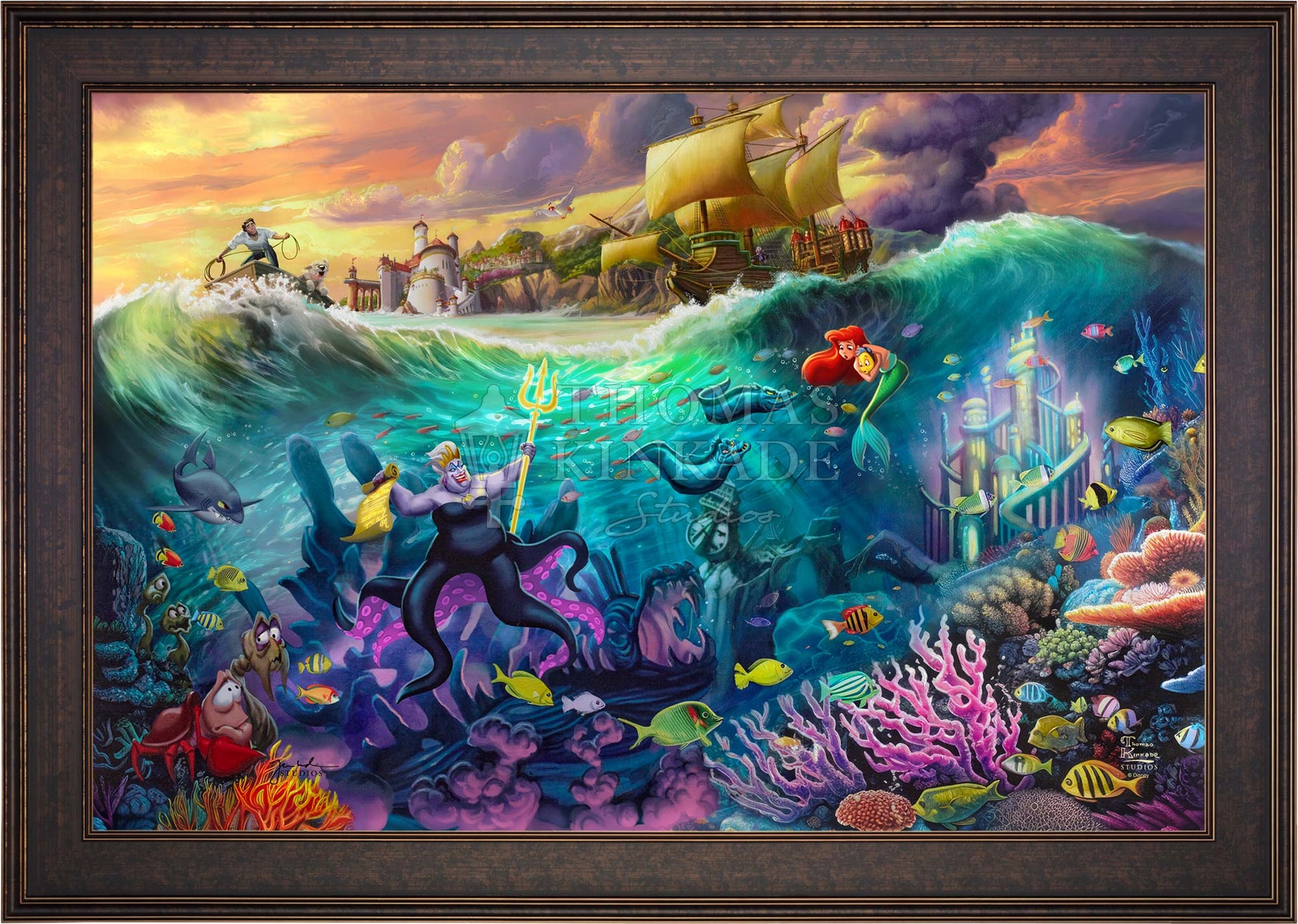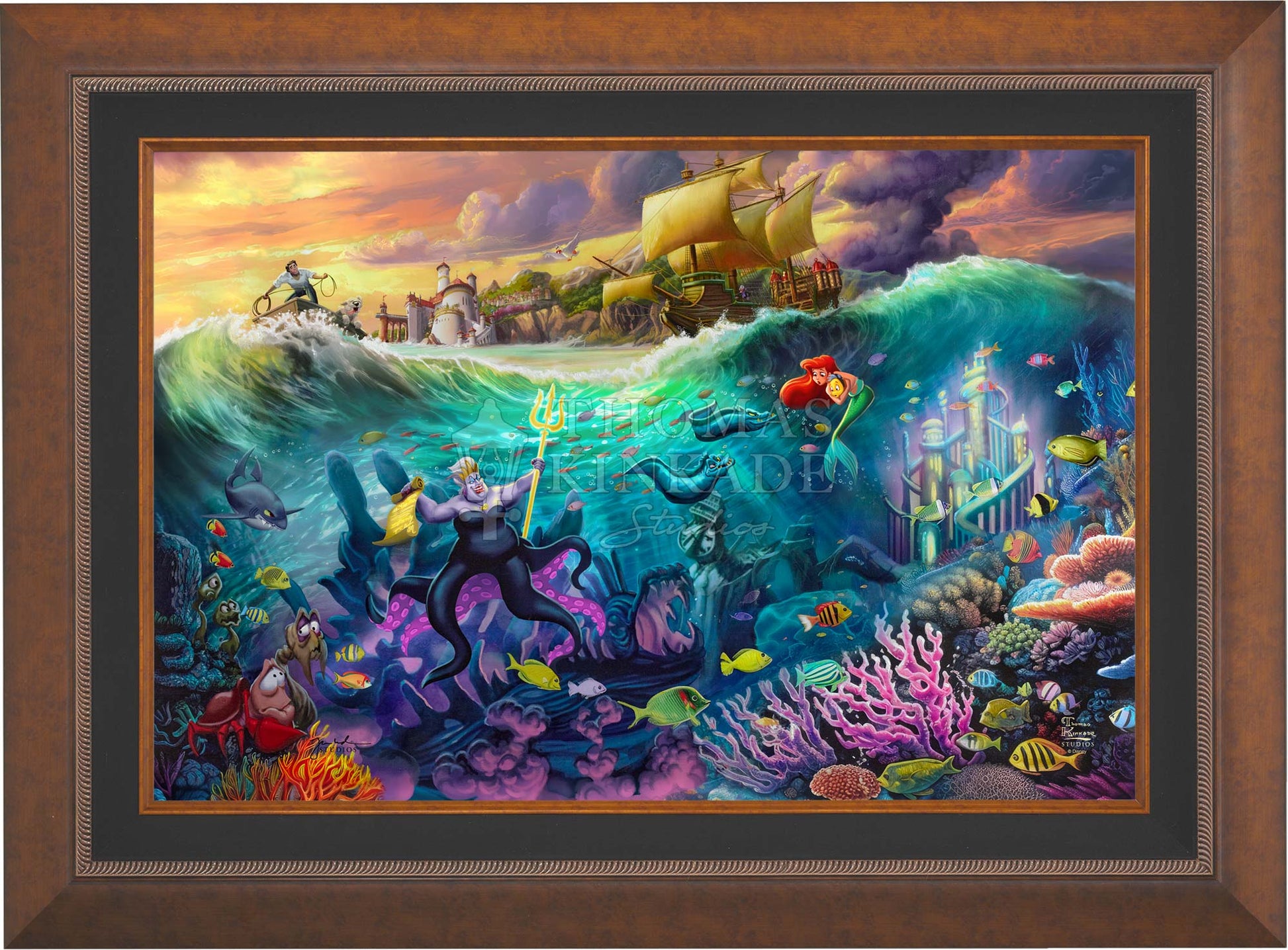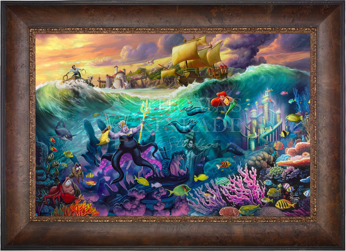 Disney’s classic film The Little Mermaid illustrates the story of a free-spirited mermaid princess who longs to be part of the human world. Painted in our signature narrative panorama style, Thomas Kinkade Studios presents this story from the villain’s perspective in Disney Ursula .