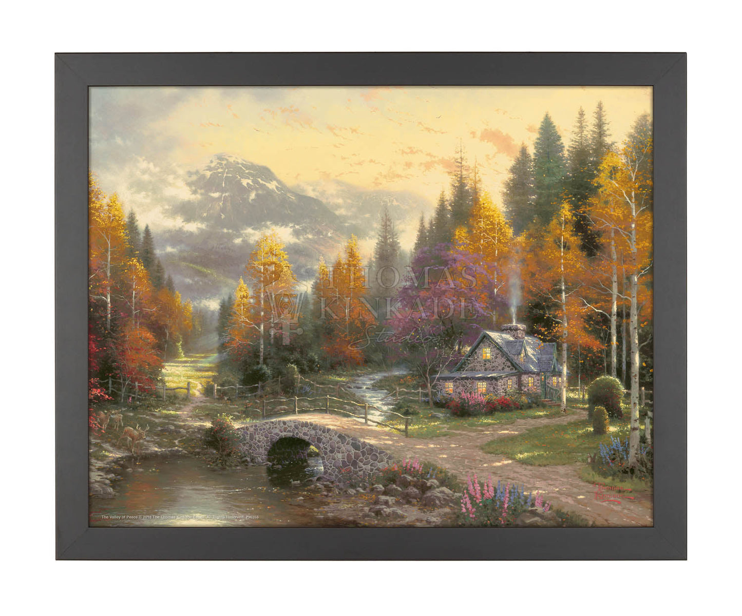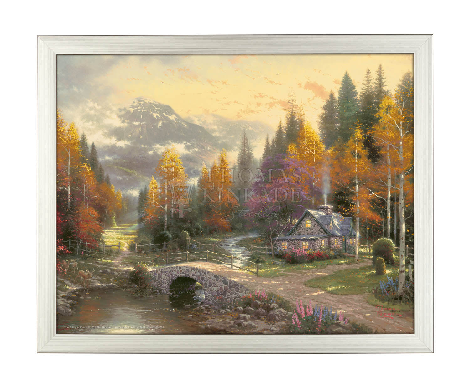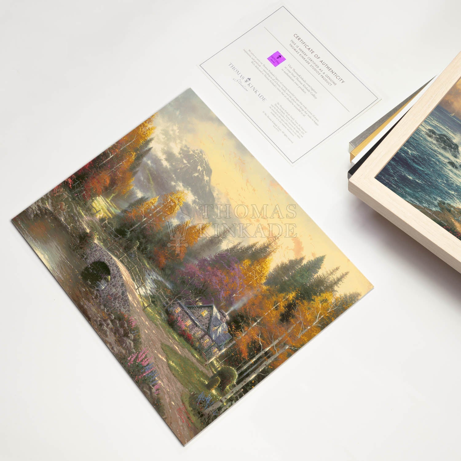 Thomas Kinkade Studios Art Prints are packaged in a collector’s sleeve with an official Thomas Kinkade Studios Certificate of Authenticity, featuring a tamper-evident holographic seal. Printed on high quality 11” x 14” Satin Art Paper, each piece can be purchased unframed or framed, making them a great gift for someone special or an excellent addition to your personal collection. Frame choices include classic Black, fresh White, contemporary Silver, rich Gold, and rustic Natural Wood options, perfect for any home decor.