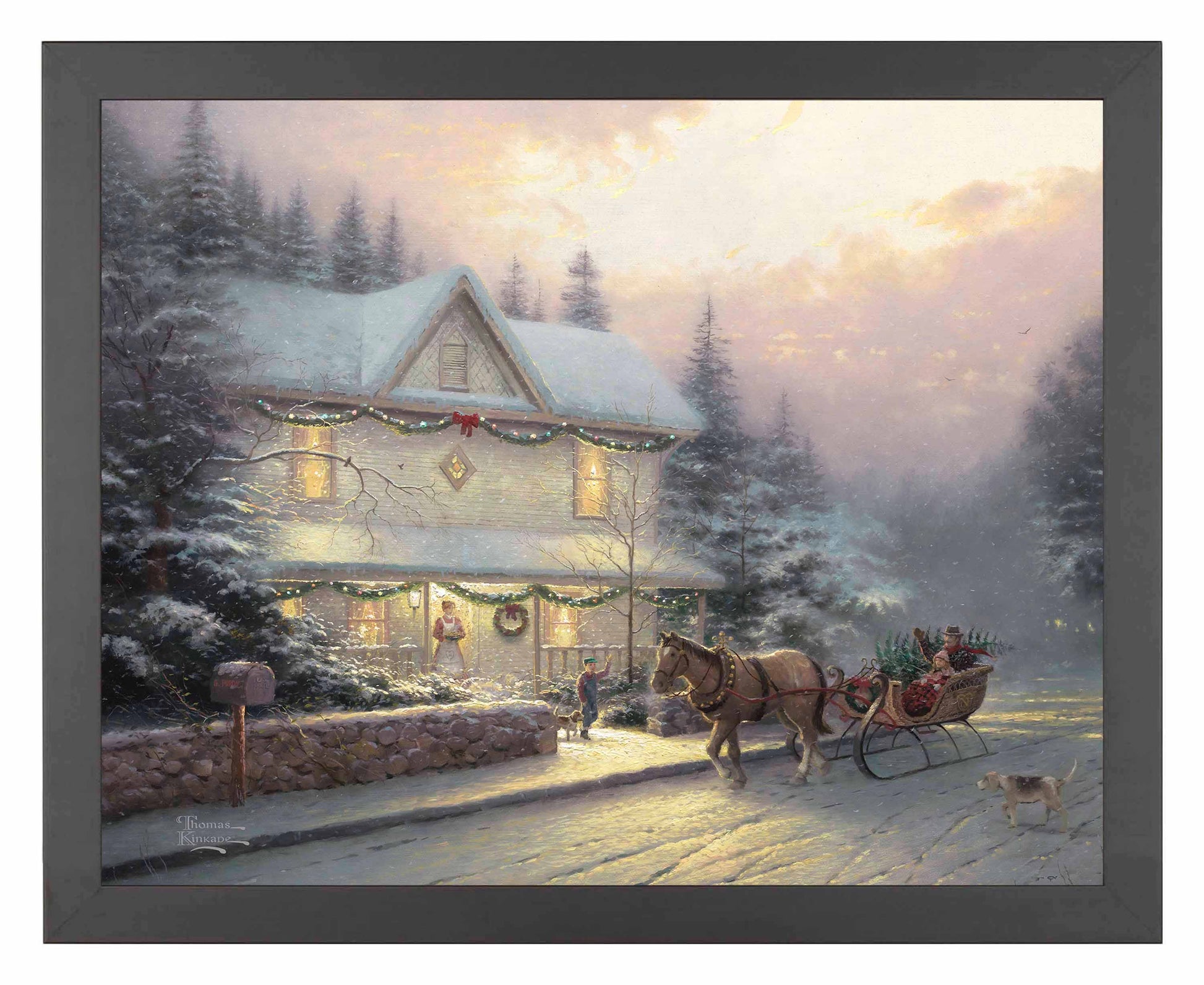 Thomas Kinkade Studios Art Prints are packaged in a collector’s sleeve with an official Thomas Kinkade Studios Certificate of Authenticity, featuring a tamper-evident holographic seal. Printed on high quality 11” x 14” Satin Art Paper, each piece can be purchased unframed or framed, making them a great gift for someone special or an excellent addition to your personal collection. Frame choices include classic Black, fresh White, contemporary Silver, rich Gold, and rustic Natural Wood options, perfect for any home decor.