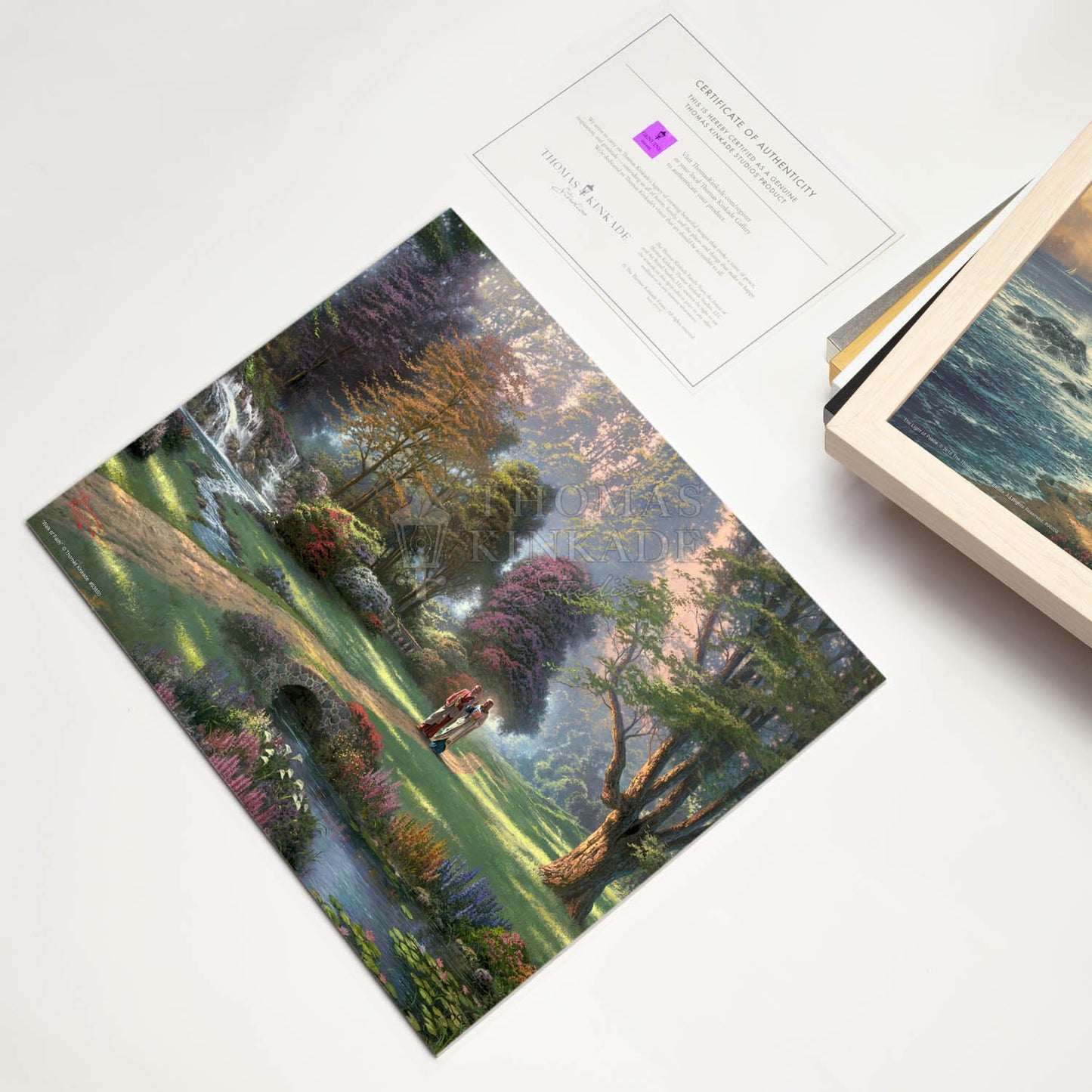 Thomas Kinkade Studios Art Prints are packaged in a collector's sleeve with an official Thomas Kinkade Studios Certificate of Authenticity, featuring a tamper-evident holographic seal. Printed on high quality 11” x 14” Satin Art Paper, each piece can be purchased unframed or framed, making them a great gift for someone special or an excellent addition to your personal collection. Frame choices include classic Black, fresh White, contemporary Silver, rich Gold, and rustic Natural Wood options, perfect for any home decor.